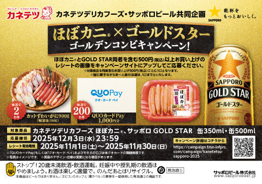 ほぼカニ® × ゴールドスター 「ゴールデンコンビキャンペーン」実施!~"うまさの黄金コンビ"で、秋冬の食卓をもっと華やカニ ~