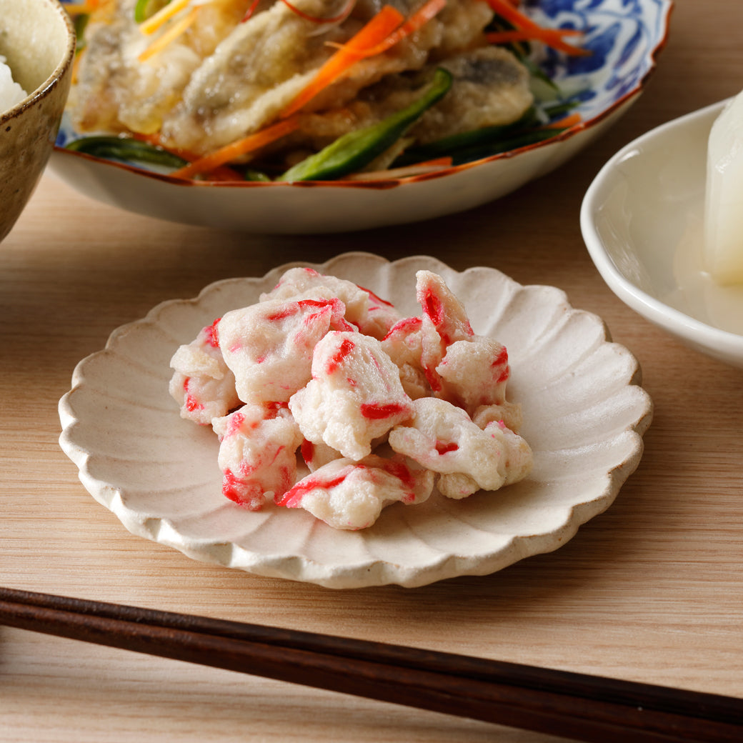 盛り付けるだけでちょっと贅沢なおつまみに。毛ガニのような上品な繊維と味の深みをお楽しみ頂けます。オリジナルのカニ味噌だれでお召し上がりください。