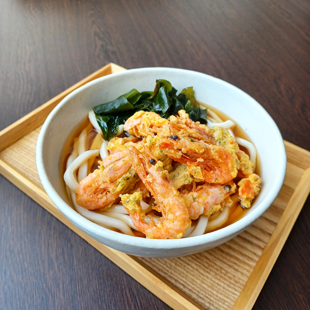 いつものうどんにトッピングするだけ!甘えびの色で華やかさがアップします。温かいうどんにも冷たいうどんにもぜひどうぞ。