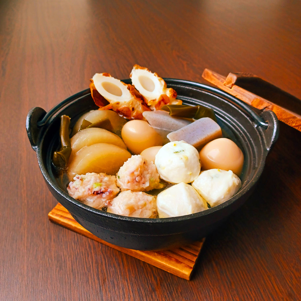 ふわっと香るゆずの香りとおでんだしが相性◎鯛つみれは、後入れで加熱時間短めでもおいしくお召し上がりいただけ、色合いもきれいに仕上がります。