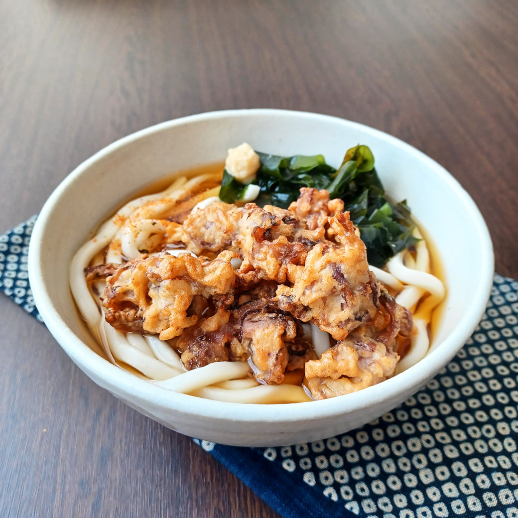 いか唐はあったかいうどんにも冷たいうどんにもおすすめのトッピングです。つゆを吸ったいか唐が味わい深い1品です。
